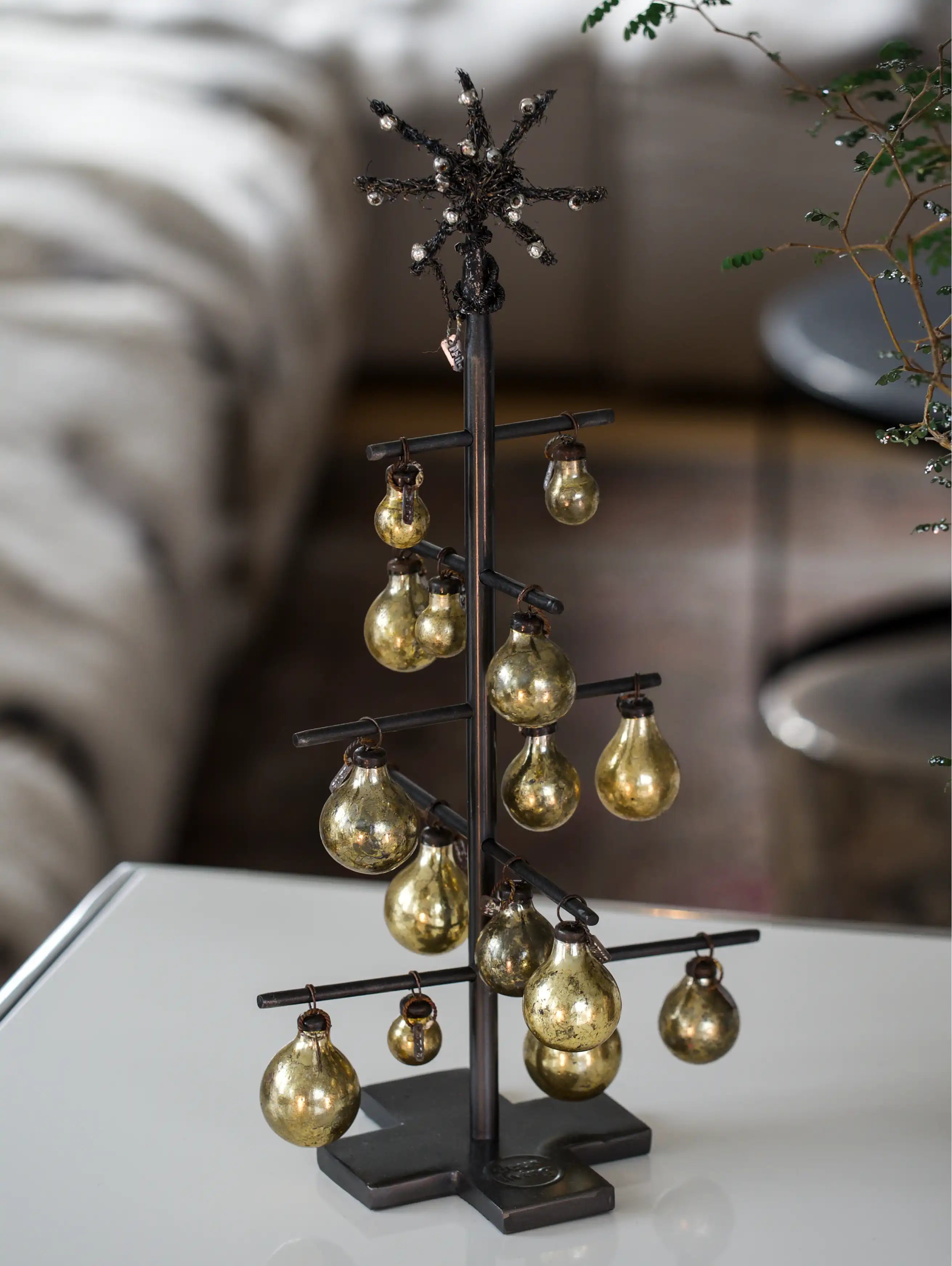 Small Dark Metal Tree with Golden Beads